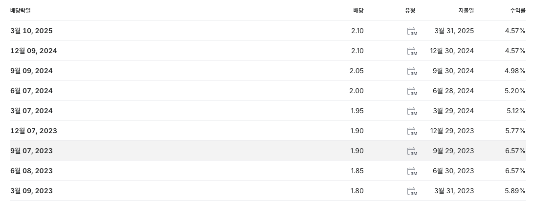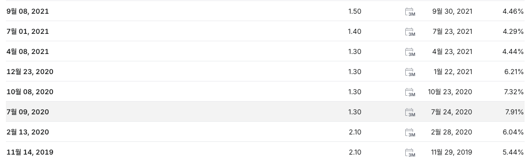 하지만 빠른 속도로 배당금을 인상했구요! 코로나 직전인 $2.10으로 원상복구가 되었습니다!