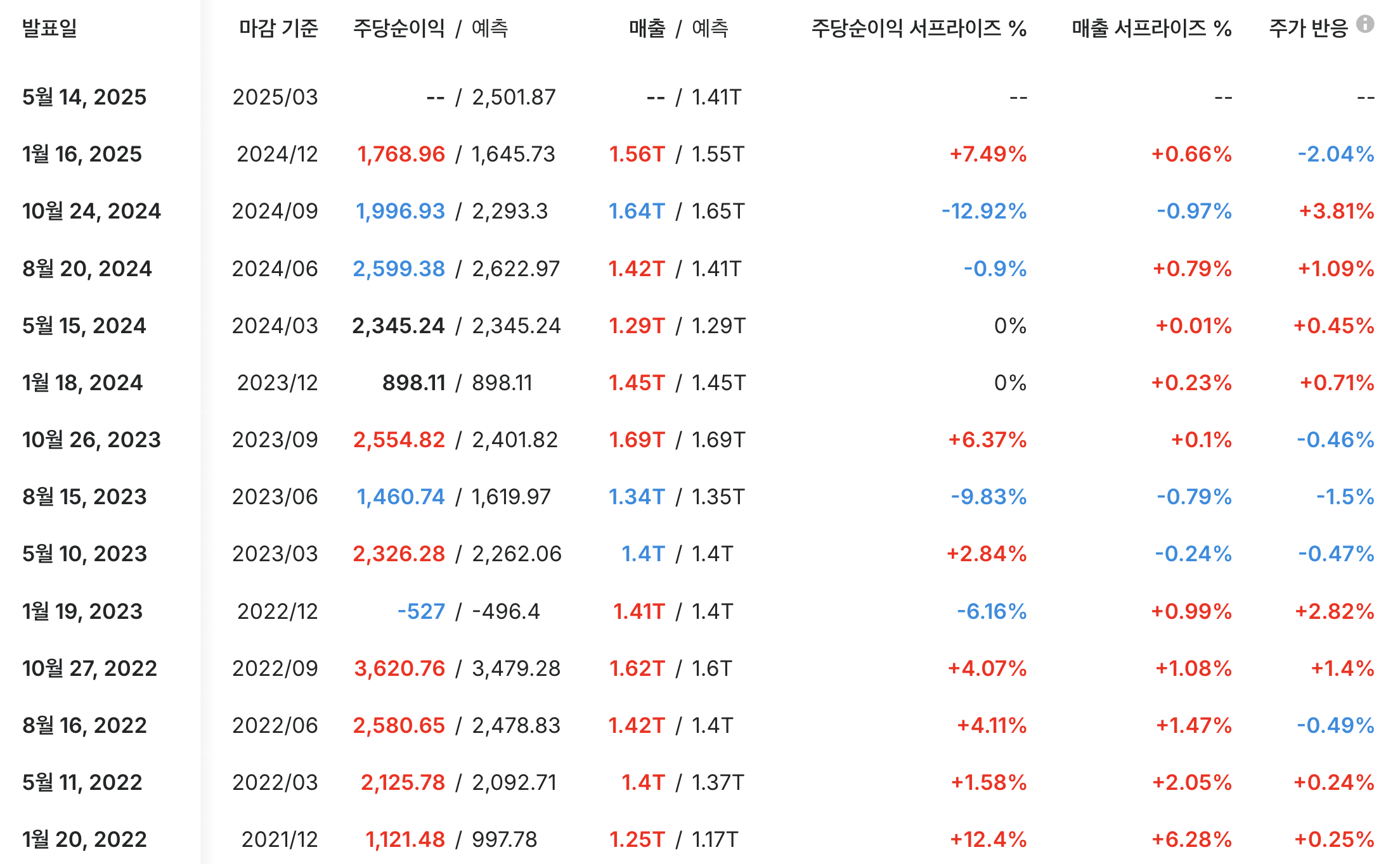 주당순이익은 2022년 10월 고점을 찍은 이후 조금씩 조정이 있었습니다!